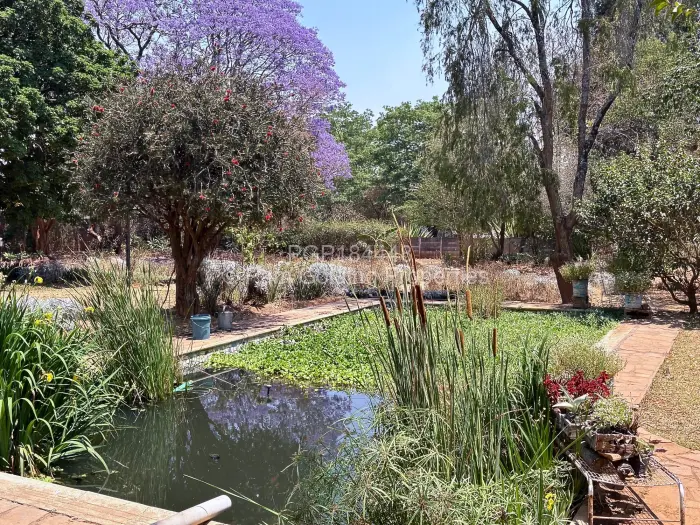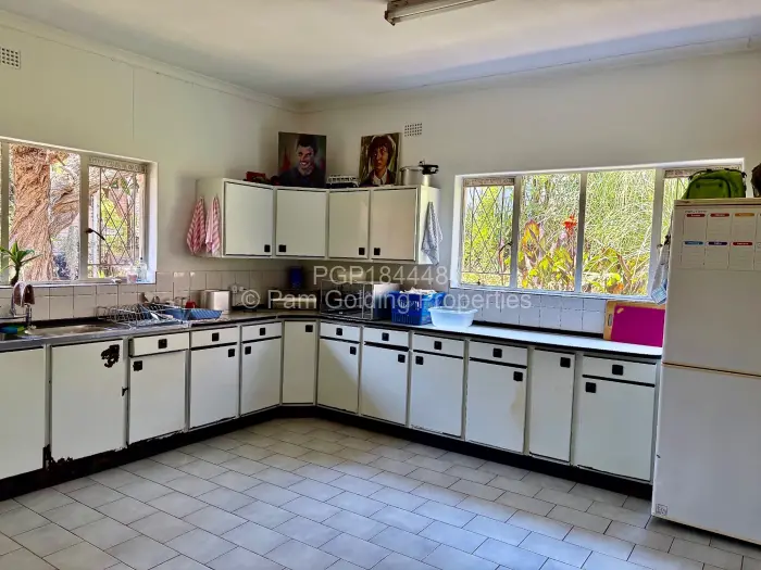 Borehole, 10,000 l water tank, 90,000 l water harvesting reservoir, walled, electric gate. Two small cottages also on the property, double staff quarters, walled, electric gate, zoned for mixed use.
